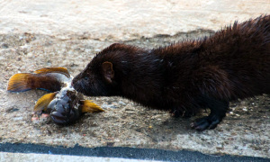 Ein seltener Mink (amerikanischer Nerz) und kein Fischotter wurde in Warnemünde und Hohe Düne an den Molen gesichtet.